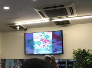 店内のスクリーンとテレビにも、展示されているイラストがスライドショーで表示されており、自分の作品が表示されるのを、スマホ片手にドキドキしながら待ち構える私…。笑