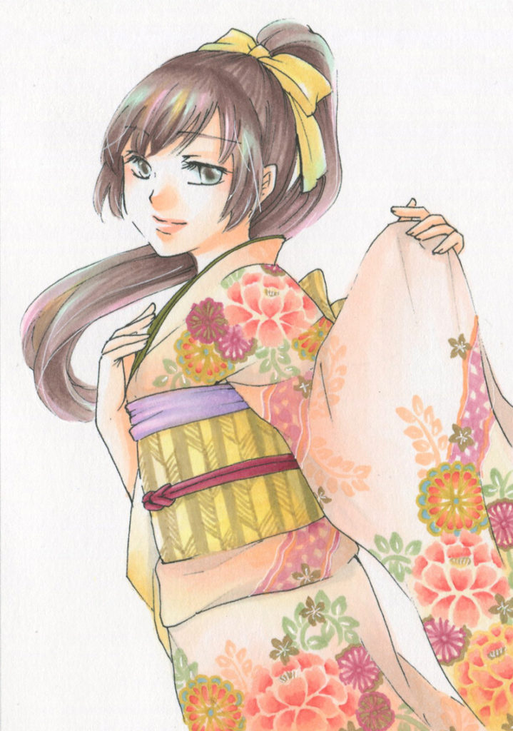 などをバランスよく描けば、見た目に華やかな着物を描くことができます。